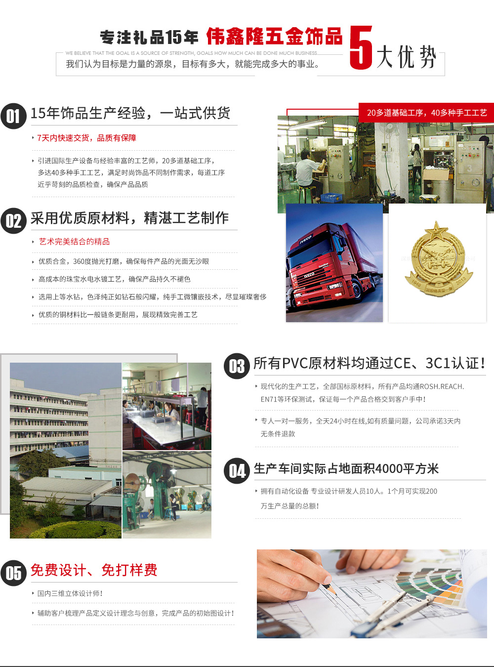 深圳市偉鑫隆五金飾品有限公司位于廣東省深圳市坑梓鎮(zhèn),是一家集設(shè)計、生產(chǎn)、銷售為一體的專業(yè)五金禮品工藝公司。 公司擁有經(jīng)驗豐富的專業(yè)技術(shù)精英團隊,至今已有十多年設(shè)計生產(chǎn)經(jīng)驗。 公司自有工廠引進先進的臺灣設(shè)備及技術(shù),擁有設(shè)計、繪圖、制模、沖壓、壓鑄、拋光、電鍍、包裝等生產(chǎn)流程,可生產(chǎn)銅、鐵、不銹鋼、鋁、鋅合金、鉛錫合金等材質(zhì)的金屬徽章、胸針、胸章、獎?wù)隆ⅹ勁啤⒔饘贅伺啤⒐ぬ柵啤⒔饘勹€匙扣、狗牌、軍牌、開瓶器、金屬手機吊飾、錢夾、領(lǐng)帶夾、帽夾、項鏈吊墜、掛包鉤、紀念章、紀念幣、袖扣、促銷禮品鑰匙扣、書簽、五金配件、開瓶器等旅游紀念品及工藝禮品五金飾品。我公司還可根據(jù)客戶樣板開模生產(chǎn)。 公司秉承“精...